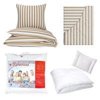 Zestaw pościeli 100x160 + 40x60 + prześcieradło we wzorze 80x160 | 213beż | biało beżowa | pasy paski