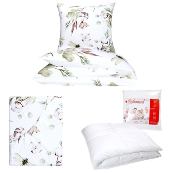 Zestaw pościeli 100x160 + 50x60 + prześcieradło we wzorze 80x160 | 347baw | biała | kwiaty bawełny