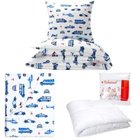 Zestaw pościeli 100x160 + 50x60 + prześcieradło we wzorze 80x160 | 997bia | biała | policja