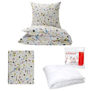 Zestaw pościeli 100x160 + 50x60 + prześcieradło we wzorze 80x160 | 004pol | biała | polne kwiaty