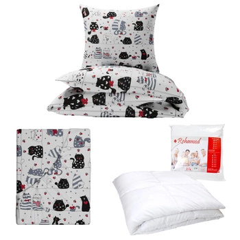 Zestaw pościeli 100x160 + 50x60 + prześcieradło we wzorze 80x160 | 061b-c | biało czerwona | koty