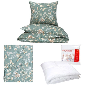 Zestaw pościeli 100x160 + 50x60 + prześcieradło we wzorze 80x160 | 205zie | szałwiowa | kwiaty