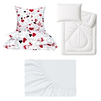 Zestaw pościeli 100x160 + 50x60 + prześcieradło jersey 80x160 | 330bcz | biało czerwona | serca Walentynki