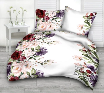 Pościel bawełniana 140x200 + poszewka na poduszkę 70x80 | 082N3D | wrzosowa | kwiaty róże