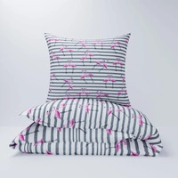 Pościel bawełniana 140x200 + 70x80 + 40x40 | 153szary | biało szara | flamingi pasy