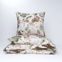 Pościel bawełniana 140x200 + poszewka na poduszkę 50x60 | 499but | zielona | liście