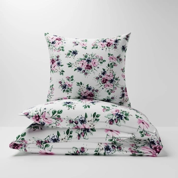 Pościel bawełniana 140x200 + poszewka na poduszkę 50x60 | 158kolo | biała | kwiaty róże