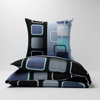 Pościel bawełniana 160x200 + 70x80 + 40x40 | 097trk | szaro turkusowa | wzór geometryczny
