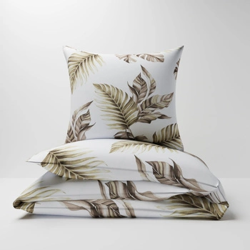 Pościel bawełniana 200x220 + poszewki na poduszkę 2*70x80 | 455b-b| biało brązowa | liście