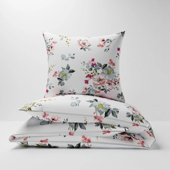 Pościel dla dziecka bawełniana 100x140 + poszewka na poduszkę 40x60 | 426los | biała | kwiaty jabłoni
