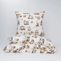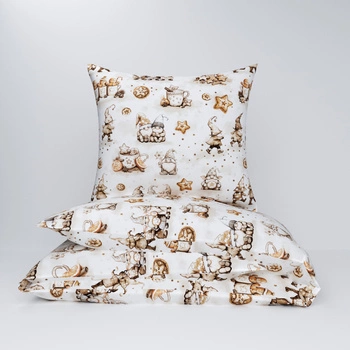 Pościel dla dziecka bawełniana 100x140 + poszewka na poduszkę 50x60 | 400bra | biało brązowa | świąteczna gnomy skrzaty