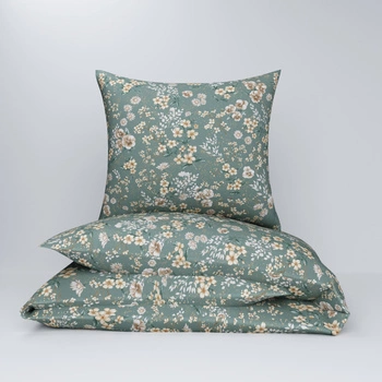 Pościel dla dziecka bawełniana 100x140 + poszewka na poduszkę 50x60 | 205zie | szałwiowa | kwiaty