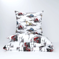 Pościel bawełniana 140x200 + poszewki na poduszkę 2*70x80 | 017s-m | biała | świąteczna choinki