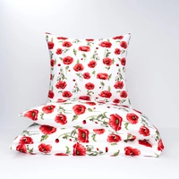 Pościel bawełniana 140x200 + poszewki na poduszkę 2*70x80 | 126bia | biało czerwona | kwiaty maki