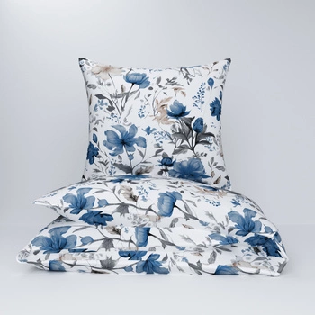 Pościel bawełniana 140x200 + poszewki na poduszkę 2*70x80 | 382nie | biała | kwiaty piwonie