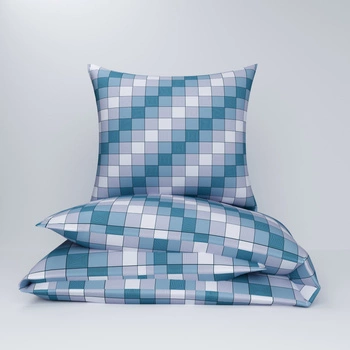 Pościel bawełniana 140x200 + poszewki na poduszkę 2*70x80 | 309T3d | turkusowa | krata 3D