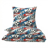 Pościel bawełniana 140x200 + poszewki na poduszkę 2*70x80 | 072now | niebieska | piłki futbol