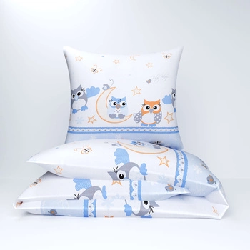 Pościel bawełniana 140x200 + poszewka na poduszkę 50x60 | 234nie | niebieska | sowy