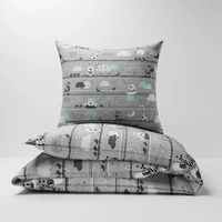 Pościel bawełniana 160x200 + poszewka na poduszkę 50x60 | 196tur | szaro turkusowa | misie
