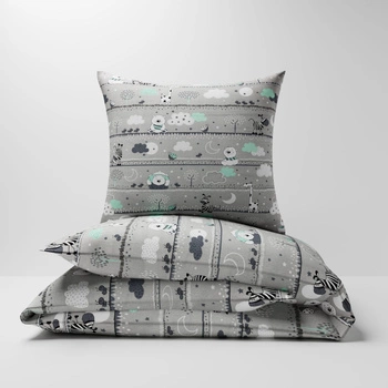 Pościel bawełniana 160x200 + poszewka na poduszkę 50x60 | 196mie | szaro miętowe | misie