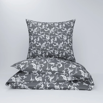 Pościel bawełniana 160x200 + poszewka na poduszkę 50x60 | 193sza | szara | gałązki