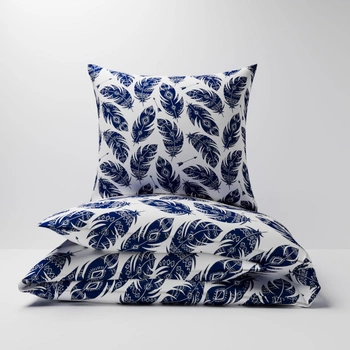 Pościel dla dziecka bawełniana 140x160 + poszewka na poduszkę 50x60 | 003gra | biało granatowa | piórka | piórka