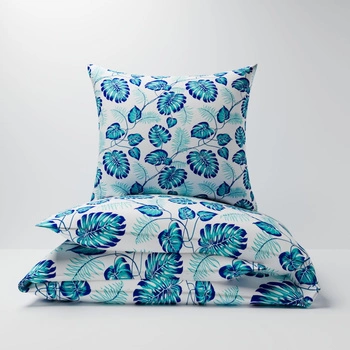 Pościel bawełniana 140x200 + poszewki na poduszkę 2*70x80 | 032zie | biało zielona | liście monstery