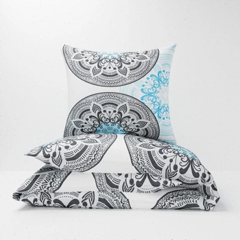 Pościel bawełniana 140x200 + poszewki na poduszkę 2*70x80 | 199tur | turkusowa | ornament
