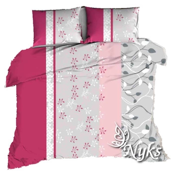 Pościel bawełniana 140x200 + poszewki na poduszkę 2*70x80 | 149róż | szaro różowa | kwiaty