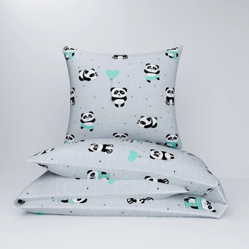 Pościel dla dziecka bawełniana 100x160 + poszewka na poduszkę 40x60 | 198Pmi | szaro miętowa | misie panda