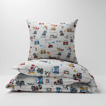 Pościel dla dziecka bawełniana 140x160 + poszewka na poduszkę 50x60 | 081sza | szara | wyścig