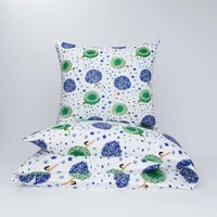 Pościel bawełniana 140x200 + poszewki na poduszkę 2*70x80 | 124pap | biało zielona | liście paproć