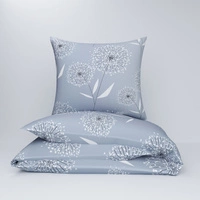 Pościel bawełniana 140x200 + poszewka na poduszkę 50x60 | 376sza | szara | dmuchawce