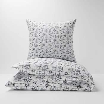 Pościel dla dziecka bawełniana 140x160 + poszewka na poduszkę 70x80 | 040grn | biało granatowa | wzór marynarski