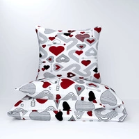 Pościel bawełniana 160x200 + poszewki na poduszkę 2*70x80 | 444bia | bało czerwona | serca walentynki