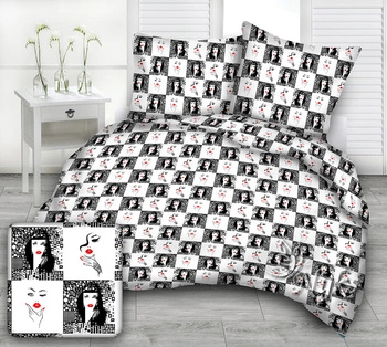 Pościel bawełniana 160x200 + poszewka na poduszkę 70x80 | 500lal | biało czarna | twarze