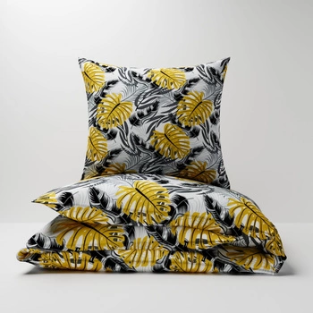 Pościel dla dziecka bawełniana 140x160 + poszewka na poduszkę 50x60 | 349mio | biała | liście monstera