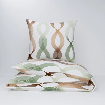 Pościel bawełniana 160x200 + poszewki na poduszkę 2*70x80 | 343zie | zielono brązowa | geometryczna wstążki