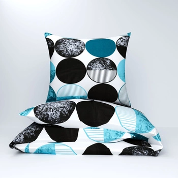 Pościel bawełniana 140x200 + poszewka na poduszkę 70x80 | 230trk | turkusowa | grochy