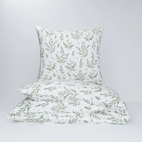 Pościel dla dziecka bawełniana 90x120 + poszewka na poduszkę 40x60 | 102Tzi | biało zielona | trawa i liście