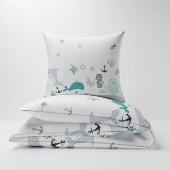 Pościel dla dziecka bawełniana 90x120 + poszewka na poduszkę 40x60 | 235mie | biało miętowa | morski