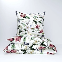 Pościel bawełniana 160x200 + poszewka 70x80 | ecri | kwiaty magnolie | 359mag