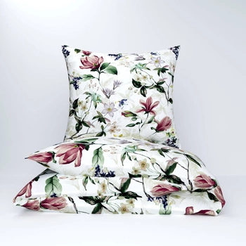 Pościel bawełniana 140x200 + poszewka 50x60 | biało fioletowa | powoje kwiaty | 122fio