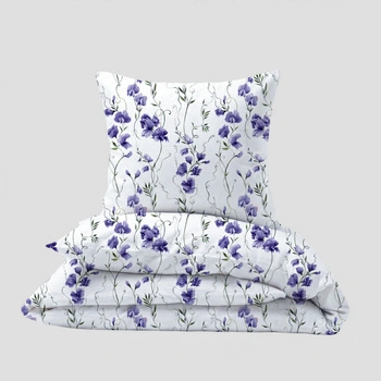 Pościel bawełniana 140x200 + poszewka 50x60 | biało fioletowa | powoje kwiaty | 122fio