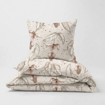 Pościel bawełniana 120x180 + poszewka 50x60 | beżowa | liście kwiaty | 007beż