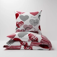 Pościel dla dziecka bawełniana 120x180 + poszewka na poduszkę 50x60 | 070baw | biało czerwona | serca walentynki