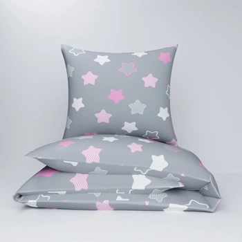 Pościel dla dziecka bawełniana 90x120 + poszewka na poduszkę 40x60 | 300róż | szaro różowa | gwiazdki
