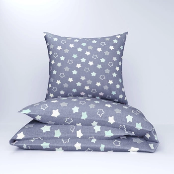 Pościel dla dziecka bawełniana 90x120 + poszewka na poduszkę 40x60 | 300mie | szaro miętowa | gwiazdki