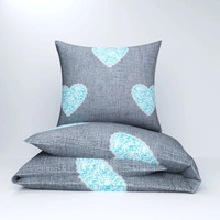Pościel bawełniana 140x200 + 70x80 + 40x40 | 330turk | szaro turkusowa | serca walentynki