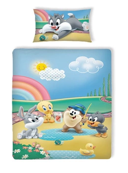 Pościel dla dziecka bawełniana 100x135 + poszewka na poduszkę 50x60 | 501nie | niebieska | tweety